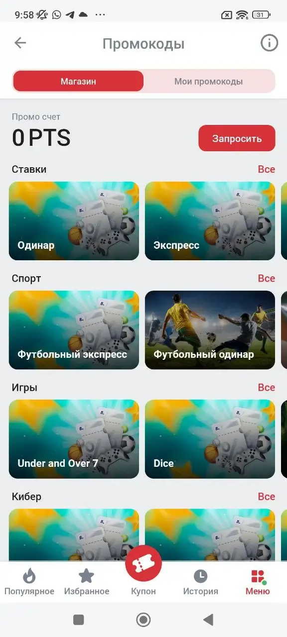 - Автоматические push-уведомления о бонусах, акциях и результатах пари.